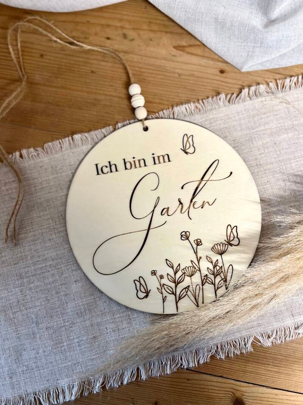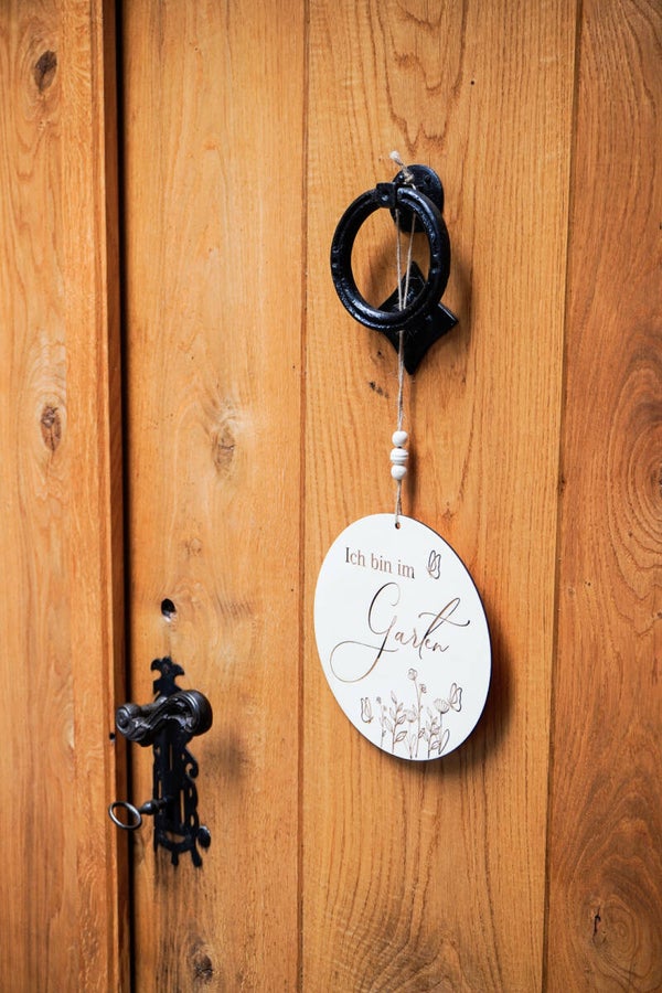 Bringe einen Hauch von Charme und Humor in deinen Außenbereich mit unserem dekorativen Holzschild mit der Aufschrift "Bin im Garten". Dieses Schild ist die perfekte Ergänzung für deinen Garten, deine Terrasse oder den Eingangsbereich und informiert stilvoll über deine Gartenaktivitäten.