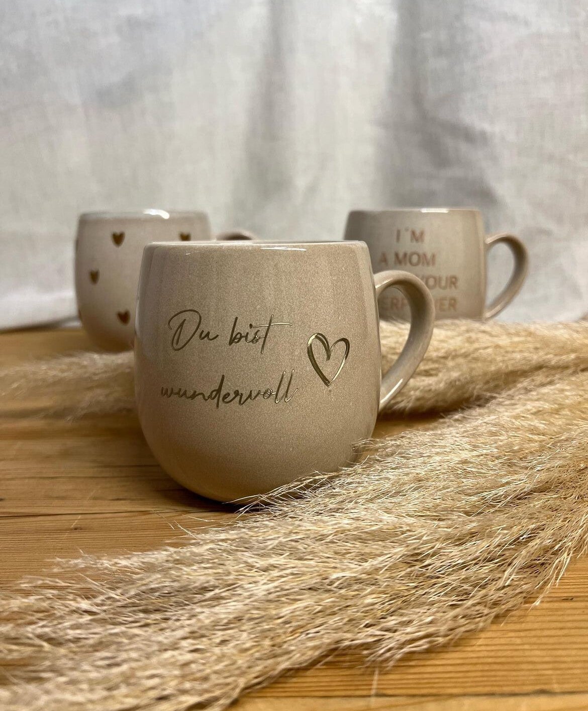 Hol dir die schlichte Steinguttasse in zeitlosem Beige! Sie ist nicht nur perfekt für deinen täglichen Kaffee oder Tee, sondern bringt auch einen Hauch von Stil in deine Küche.