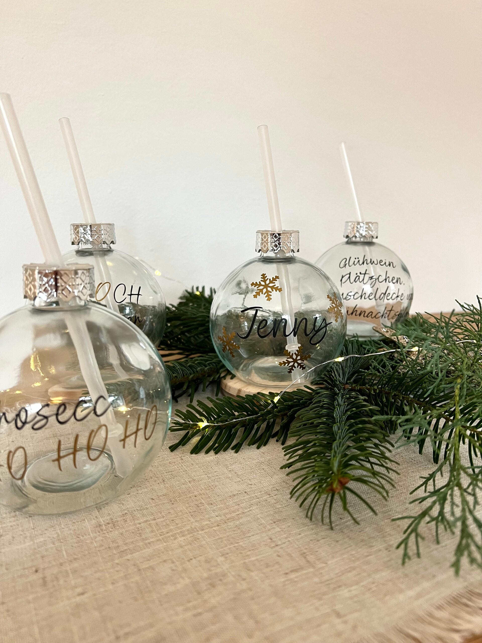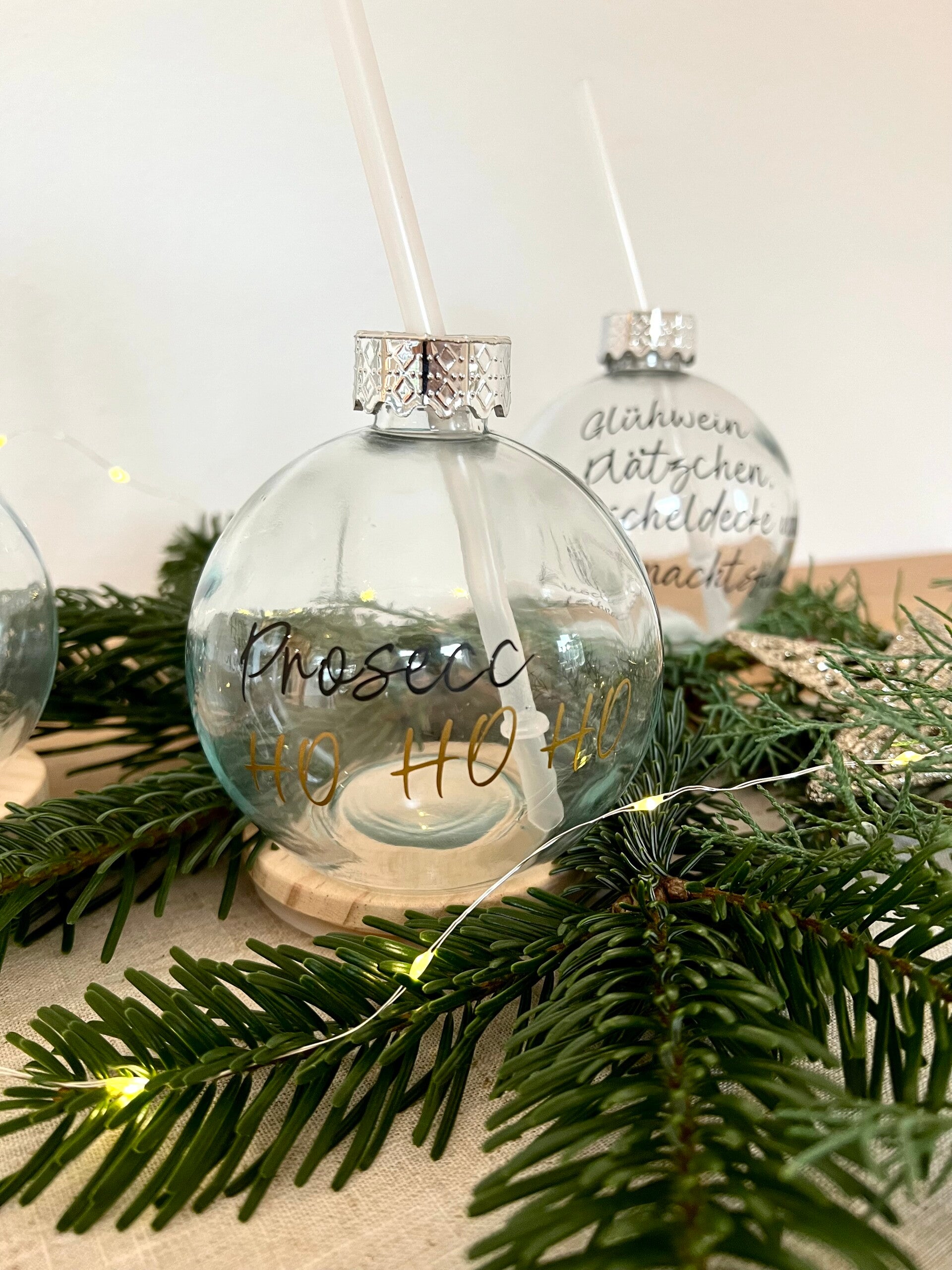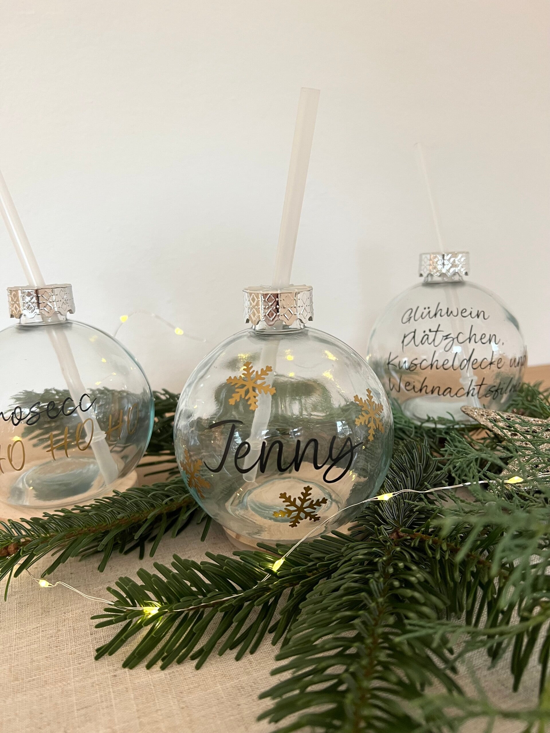 Dieses Trinkglas in der Optik einer Weihnachtskugel ist ein echter Hingucker. Es eignet sich perfekt für heiße Getränke wie Glühwein, aber auch für prickelnde Drinks wie Prosecco!